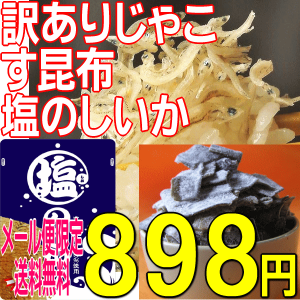 今だけ!驚愕898円!お買い得メール便限定送料無料上乾燥訳ありちりめんじゃこ70g【広島県産】やわらか酢昆布65g【尾道産】塩のしいか45gの3点セット※お届け日時指定および、代引き決済利用不可。